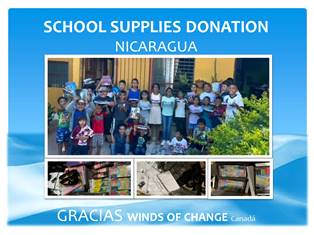 Winds of Change Canada has made a meaningful contribution to children living in vulnerable conditions in Nicaragua through a donation of essential school supplies. This initiative directly benefits students facing social and economic disadvantages, helping remove barriers to education and daily well-being.